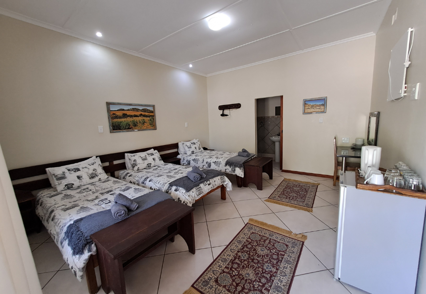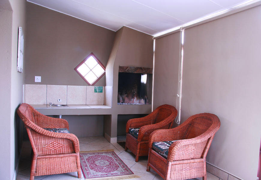 Each room includes a small fridge, hair dryer, kettle, and tea and coffee facilities. Guests can also enjoy a private veranda with a built-in braai and basin, creating a relaxed, self-catering atmosphere.
